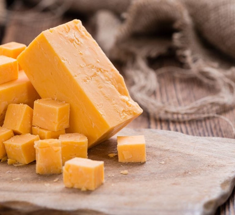 I formaggi inglesi sono noti per una varietà di tipi, tra cui il Cheddar, un formaggio duro e saporito, il Stilton, un erborinato blu piccante, il Wensleydale, un formaggio friabile e leggermente dolce, e il Red Leicester, un formaggio dal gusto di nocciola