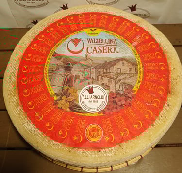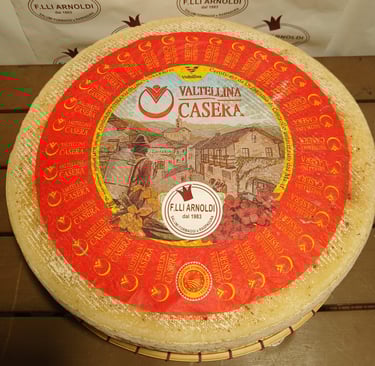 Il Casera è un formaggio DOP tipico delle Alpi lombarde. La sua pasta semidura e il sapore delicato, che si intensifica con la stagionatura, lo rendono perfetto per piatti tipici valtellinesi.