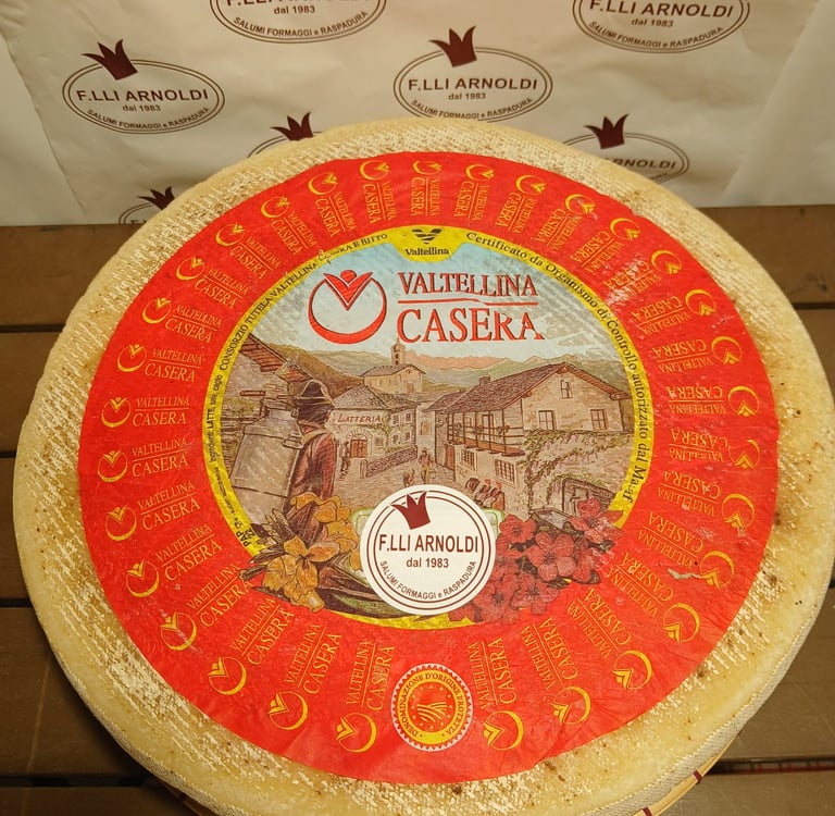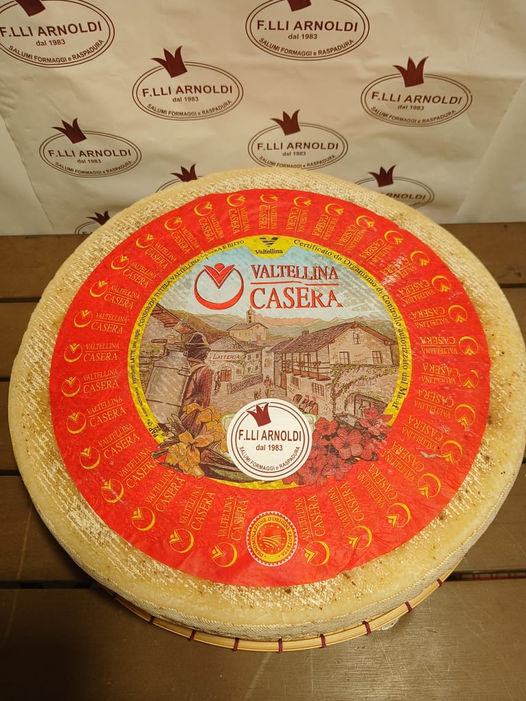 Il Casera è un formaggio DOP tipico delle Alpi lombarde. La sua pasta semidura e il sapore delicato, che si intensifica con la stagionatura, lo rendono perfetto per piatti tipici valtellinesi.